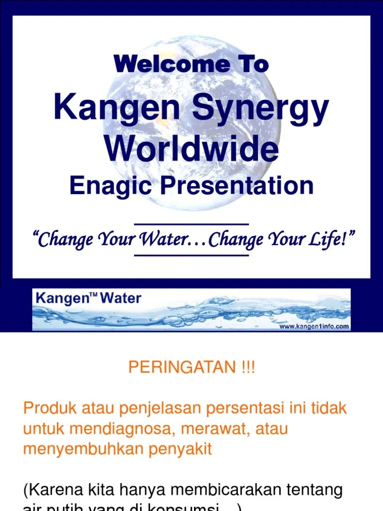 Sebelumnya saya ingin bertanya terlebih dahulu kepada pa (nama prospek), pernah tau atau mendengar tentang kangen water ? Learn new and interesting things. A water ppt template free download will provide basic designs for building slides. In addition, enagic's kangen water® systems . Get ideas for your own presentations. Shinya extols the virtues of drinking alkaline ionized water, specifically, kangen. Water® produced only by the enagic® devices. They distribute hundreds of thousands of kangen water® machines to homes all over the globe. Flipchart to guide the salesperson kangen water in indonesia. Download kangen water presentation apk 100 for android. Ontzuren is het actief bezig zijn met het reguleren van de zuurgraad. Kangen water machine enagic and tyent alkaline water ionizer are the worlds best branded water ionizers and alkaline water machines. This one's a good example, with layout options left up to .